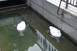 マーク・ジェンキンスは、人間や動物をモチーフにした彫像作品を設置し、道行く人を驚かせてきたアーティスト。これまで、NY、ロサンゼルス、ロンドン、サンパウロ、ベツレヘムなど世界各地でインスタレーション制作し、そのユニークなスタイルは各国で脚光を浴びています。リアルな像を追求する彼の彫刻は等身大のサイズで制作され、観客に現実と空想の狭間を体験させるという、ハイパーリアリズムの世界を演出します。本展「JENKINS」では、彼の代表的なスタイルとも言えるテープで作り上げた作品と完全等身大サイズの洋服を着た人形たちのインスタレーションをメインに、彫刻以外の新作も発表予定。そして、今回はアメリカからジェンキンス本人が来静し、ワークショップと市内数カ所でのストリート・インスタレーションを行います。